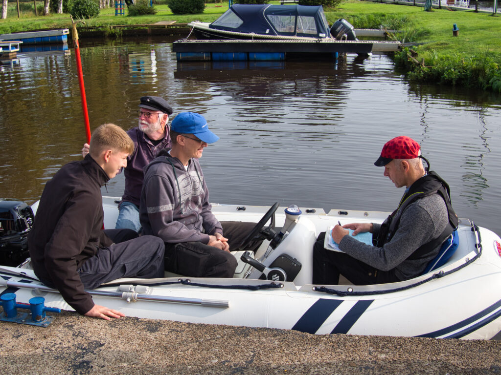 Die ist fast identisch, kaum anspruchsvoller, weil nur ein Fahren nach Kompasskurs für einen kurzen Moment gefragt wird und mit dem Handpeilkompass das Anpeilen irgendeiner Sache in der Ferne. Keine unlösbaren Aufgaben. Aber bei SEE ist der BINNEN gleich drin – in der Praktischen Prüfung.